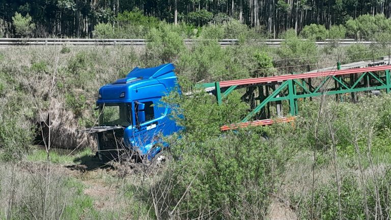 Camión cargado con autos protagonizó un espectacular despiste en la autovía Artigas 18 de noviembre de 2025