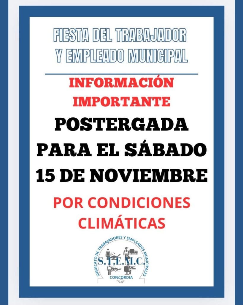 El festejo, que se iba a realizar en el camping del gremio ubicado en la zona de La Tortuga Alegre, fue reprogramado para el sábado 15 de noviembre, en el mismo lugar y con idéntica programación.
