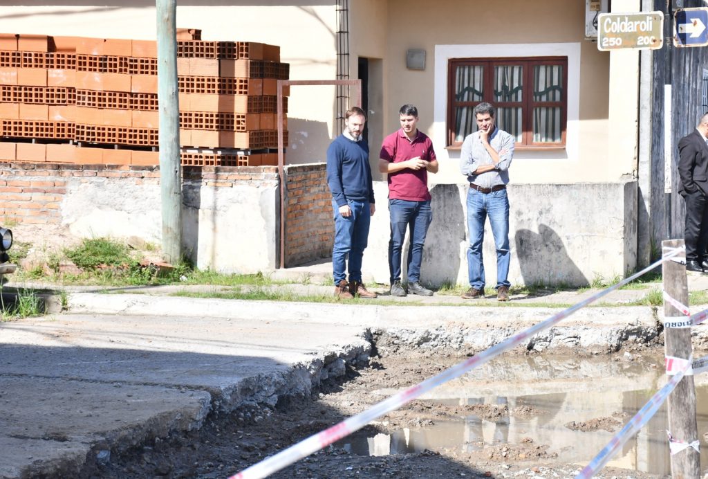 Uno de los puntos clave visitados fue la calle Victorino Simón, entre boulevard San Lorenzo y Tucumán. En este sector, se trabaja en la conexión de pluviales para terminar con los anegamientos crónicos.