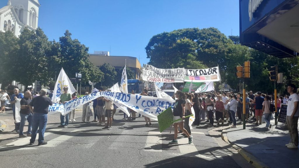 Durante el recorrido, los docentes expresaron consignas contra la gestión provincial y reclamaron mejoras salariales, en línea con el conflicto paritario que atraviesa el sector.