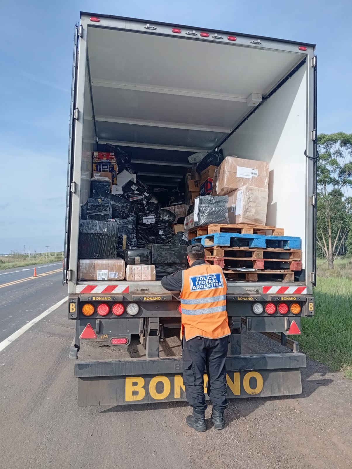El procedimiento tuvo lugar durante un control vehicular de prevención de delitos federales sobre la Ruta Nacional Nº 14, a la altura del kilómetro 495. Allí, personal de la División Unidad Operativa Federal (DUOF) Paso de los Libres de la PFA, le indicó a un camión de gran porte que detuviera su marcha. Al inspeccionar el rodado, los efectivos detectaron numerosas cajas de cartón con productos de origen extranjero que no contaban con facturas ni remitos respaldatorios.