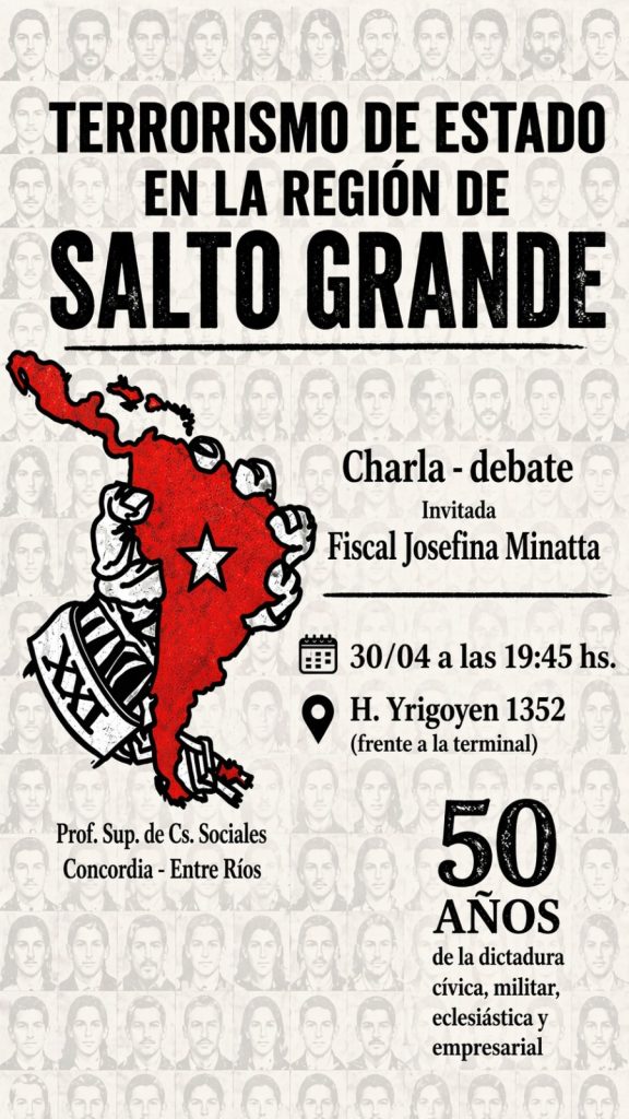 El Profesorado Superior de Ciencias Sociales de Concordia abre sus puertas a la comunidad educativa y al público en general para una jornada de reflexión necesaria. En el marco de los 50 años de la última dictadura cívico-eclesiástica-empresarial-militar, la institución organiza la charla-debate: «Terrorismo de Estado en la región de Salto Grande».