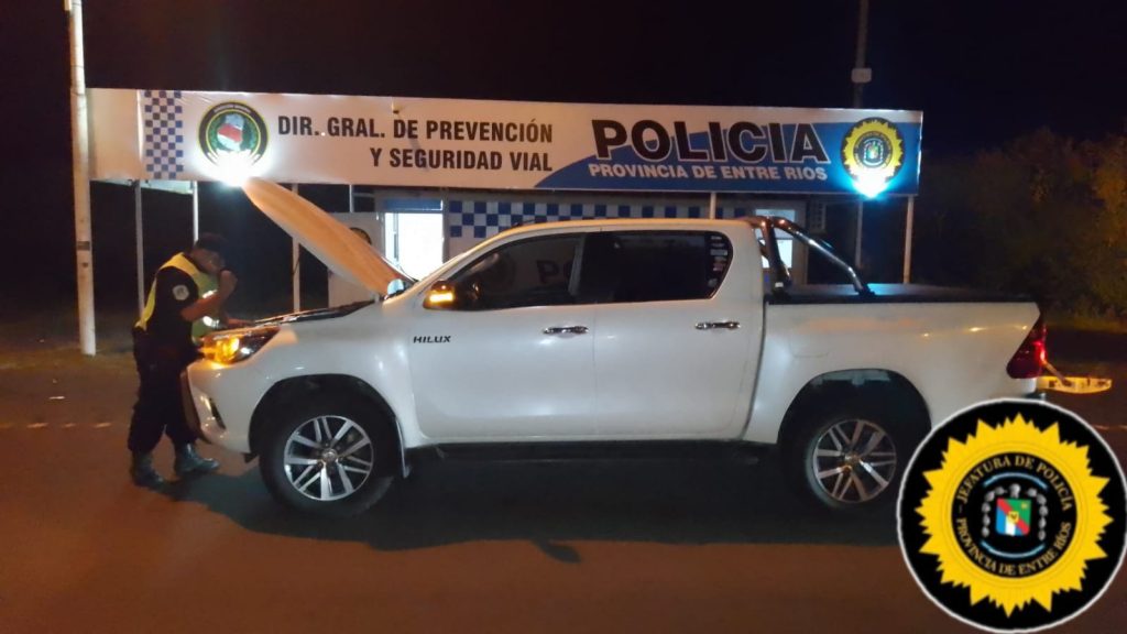 Según se informó a 7Paginas, el procedimiento fue llevado adelante por la Policia de Entre Rios en uno de los accesos al sur de la provincia. Según se informó, el conductor de una camioneta Toyota Hilux blanca intentó evadir el control policial, lo que dio inicio a un seguimiento controlado que culminó con su interceptación.