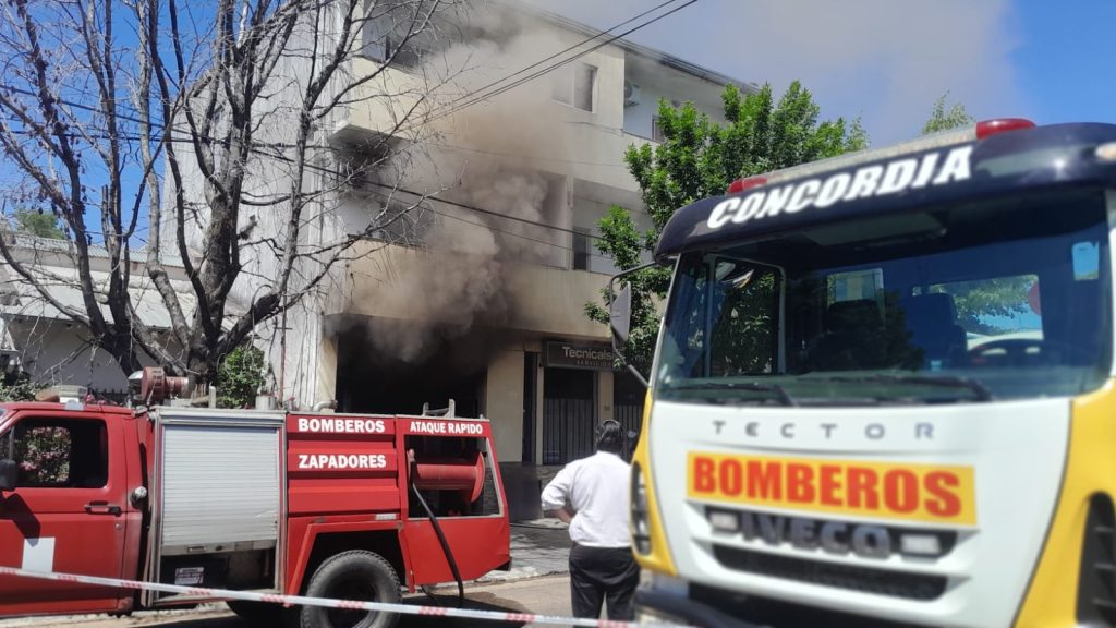 “Aproximadamente a las 10:30 tomamos conocimiento del incendio en este complejo de departamentos. Al llegar, observamos el fuego en la zona del garaje donde también funciona un local de refrigeración. Se extrajeron los vehículos y se logró sofocar el incendio antes de que se propagara”, detalló Rosatelli.