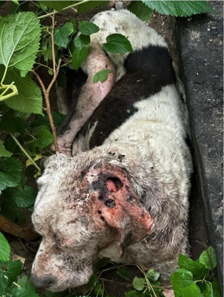 El médico veterinario policial que intervino constató que el perro presentaba un cuadro crítico: bajo peso, desnutrición, una herida de gran tamaño con miasis en la cabeza y signos de una patología crónica, lo que evidenciaba un prolongado estado de abandono.
