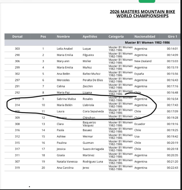 7Paginas volvió a cotejar los datos de la página oficial del Mundial Máster de MTB en Chile y la realidad es inapelable: